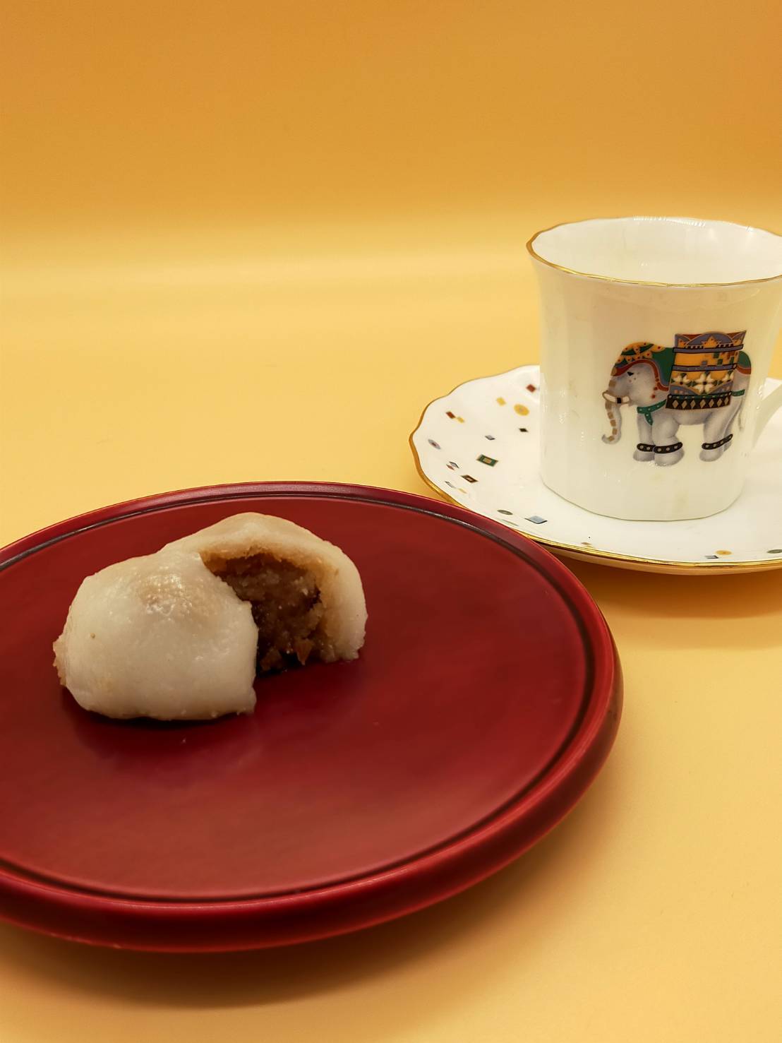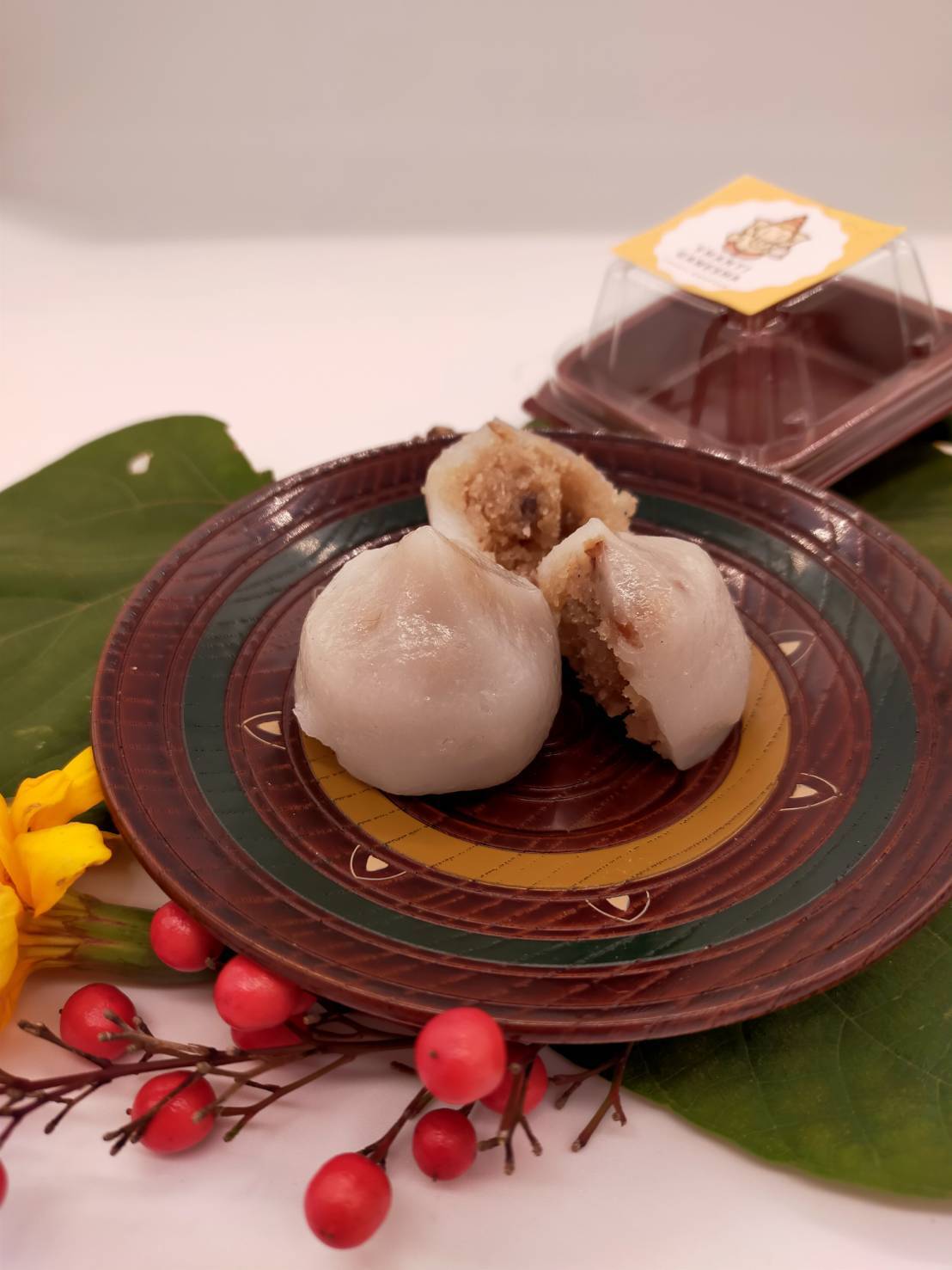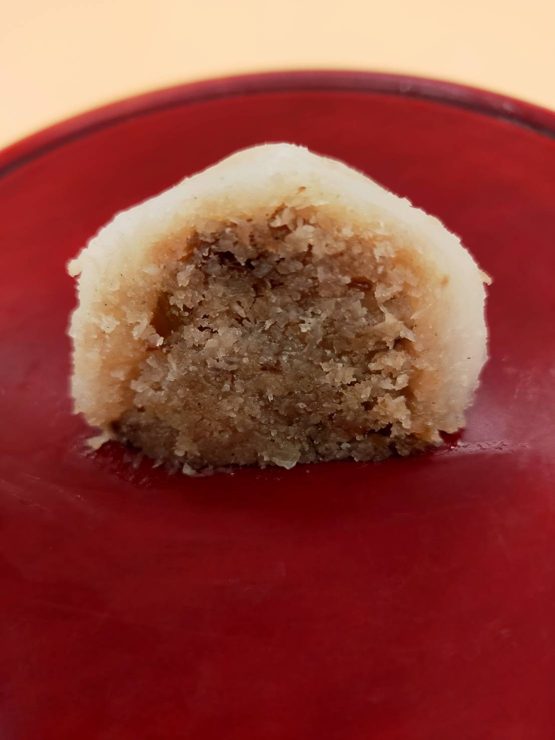 日本の小豆のあんことは異なり、ココナッツをベースにしたあんこになります。そこにクルミ、アーモンド、カシューナッツ、ピスタチオなどのナッツ類、またレーズン、クランベリーなどのドライフルーツ、さらにカルダモンも入っており、独特の良い香りがします。